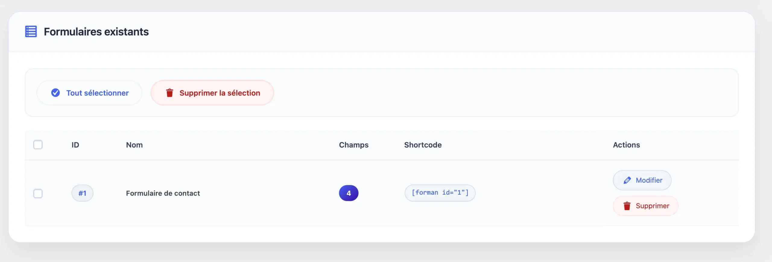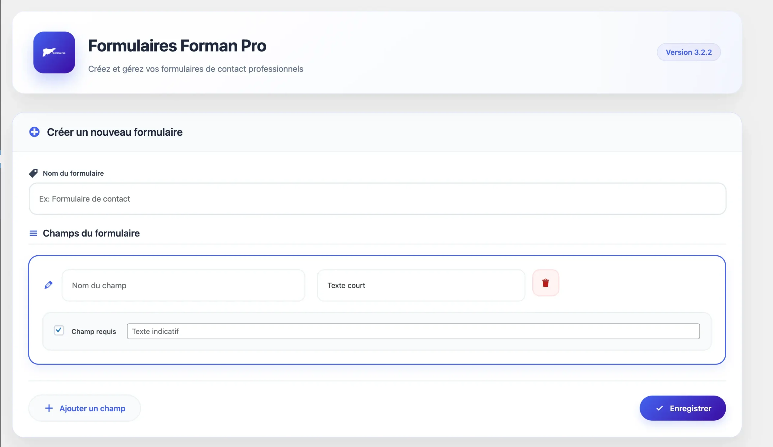 Forman Pro est développé pour s’intégrer correctement dans l’environnement WordPress en utilisant une structure simple et compréhensible.
