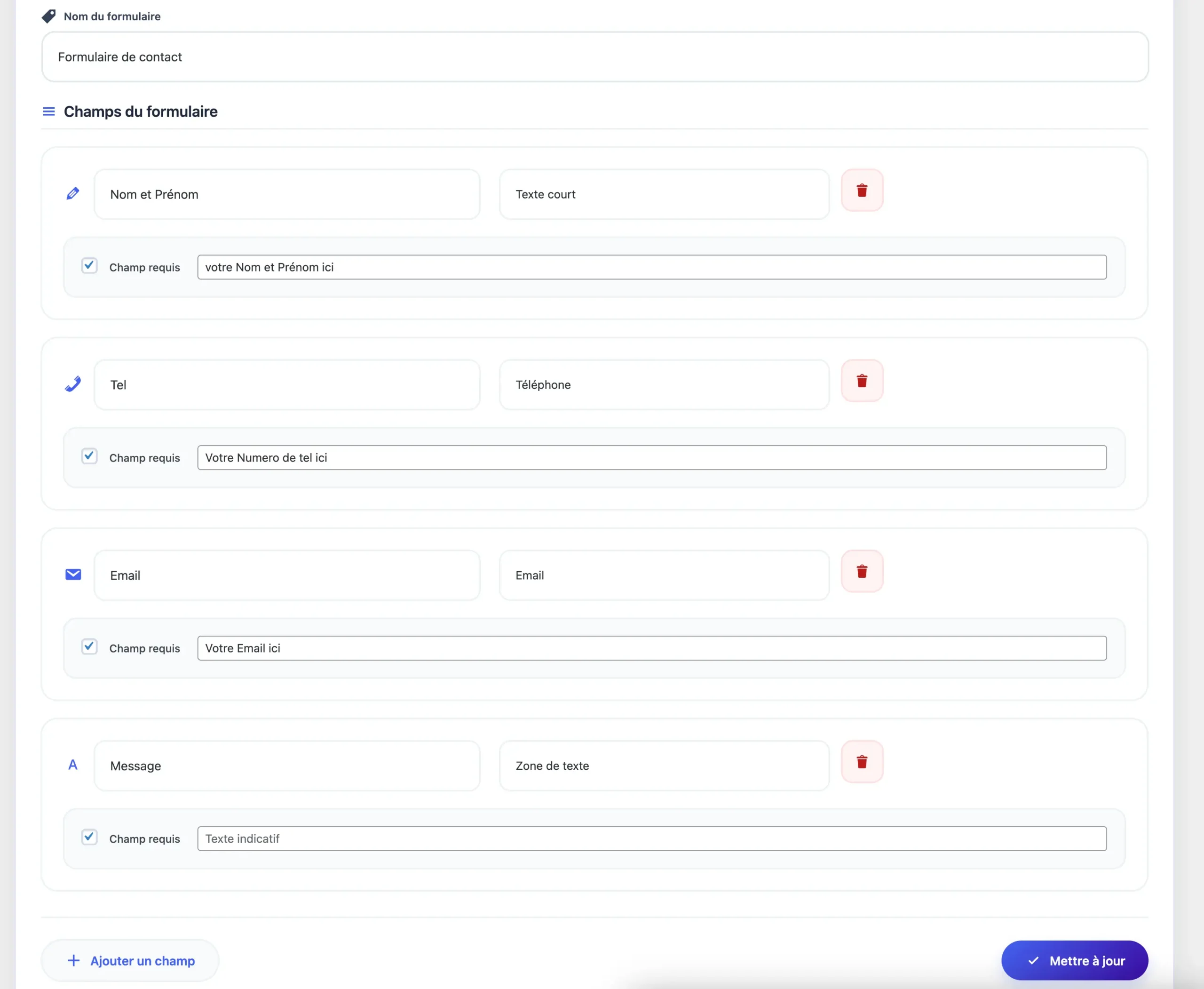 Insérez le formulaire dans une page ou un article via shortcode ou bloc.
