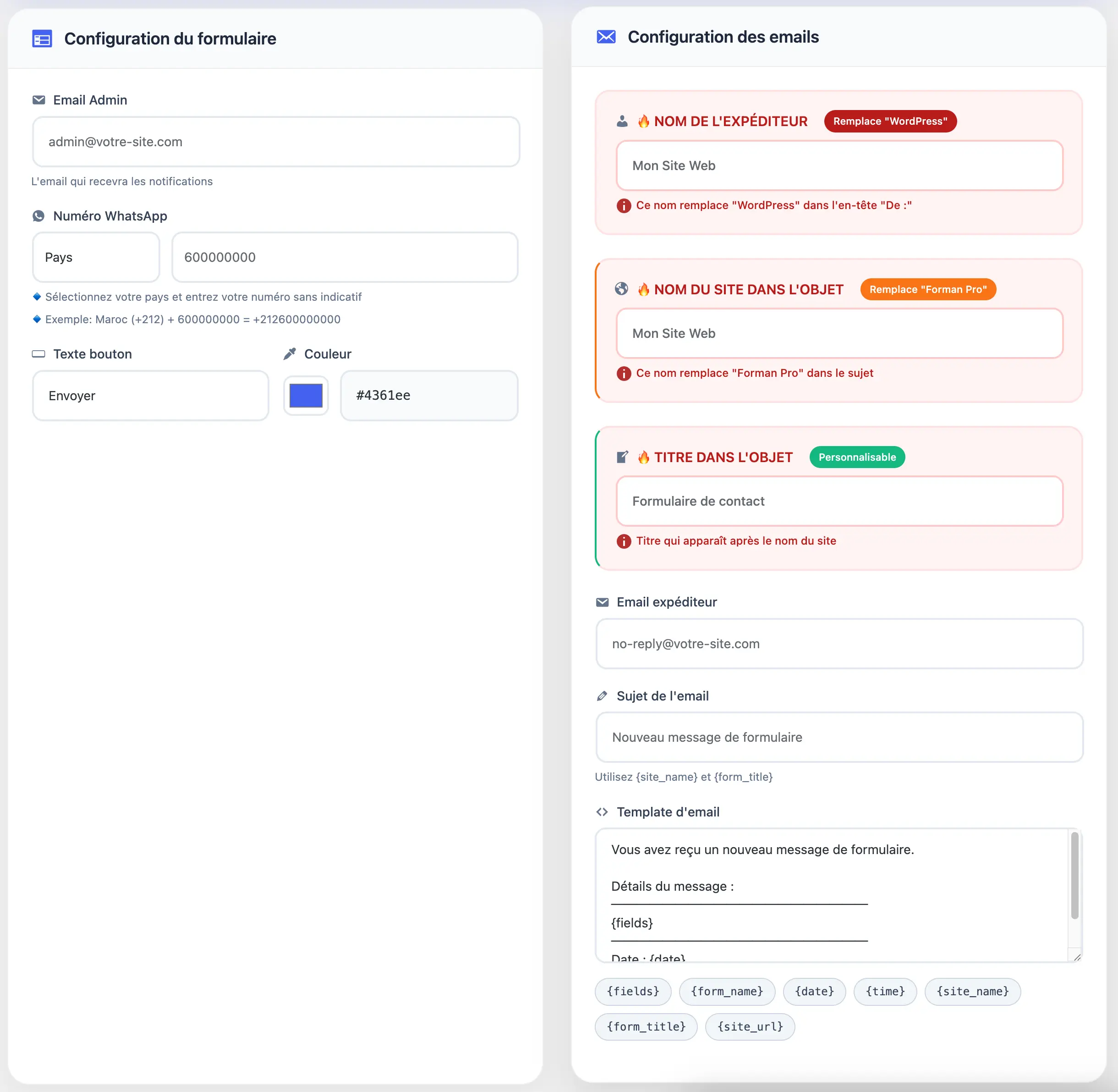 Le plugin met l’accent sur la rapidité, la simplicité d’utilisation et l’efficacité. Au lieu de stocker uniquement les données ou d’envoyer des emails parfois ignorés, Forman Pro transforme chaque interaction en échange immédiat.